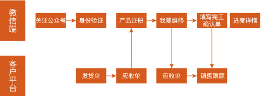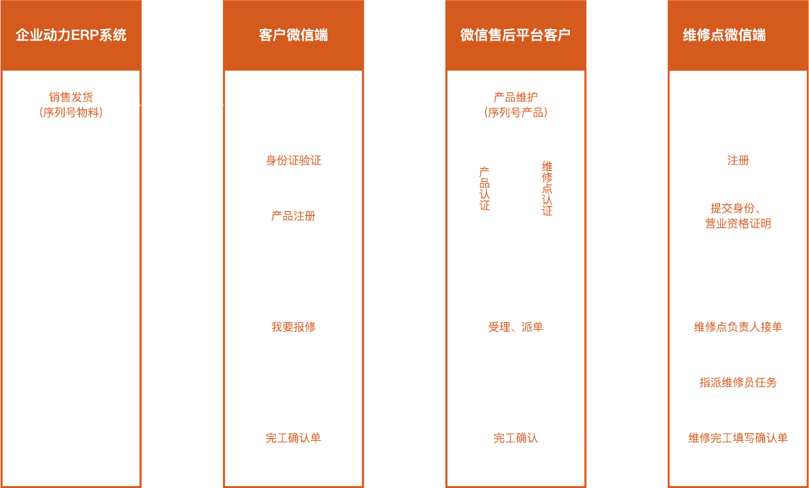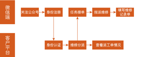 2.终端用户与服务人员入口为微信平台;厂商、维修服务点入口为PC及微信平台;