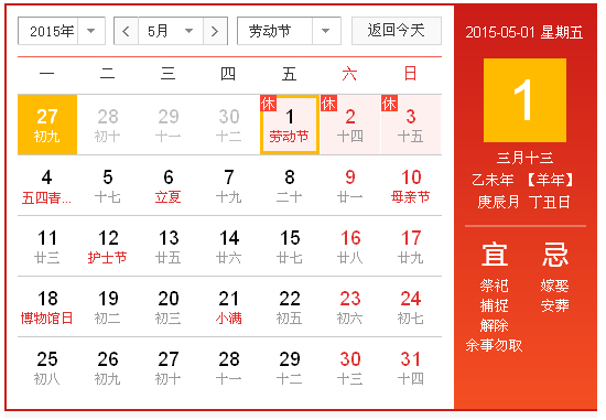 根据《国务院办公厅关于2015年部分节假日安排的通知》精神,结合我公司实际情况,现将我公司2015年劳动节放假调休日期的具体安排通知如下。 5月1日放假,与周末连休。