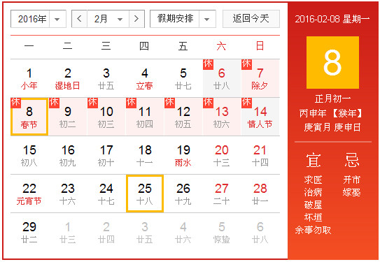 根据《国务院办公厅关于2016年部分节假日安排的通知》精神,结合我公司实际情况,现将我公司2016年春节放假调休日期的具体安排通知如下。