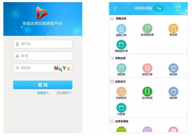 上面跟大家介绍了在APP中查单、批单的应用。很多客户都想知道是否可以在APP中下单、查库存等等。那么,下面来跟大家介绍一下供应链3.0平台,它是互联网+相结合的金融平台,将与移动互联网最大的终端使用群——微信用户,实现微信、APP、短信服务、及PC机的多种应用终端同时操作、数据时时同步。用户通过APP,能直接在掌上拥有ERP系统的核心功能,实现产品库存查询、下单、在线审批及单据状态查询等,随时随地下单。