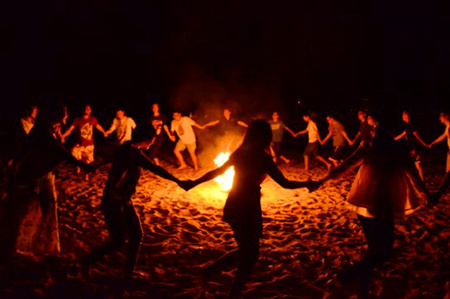 在这良辰美景中,篝火晚会将点燃大家的激情,载歌载舞,欢声笑语,其乐无穷。我们欢聚于这片美丽的海滩上海,手拉着手围着火堆狂欢,让篝火点燃我们的热情,让欢声笑语伴随火苗一起跳动,让我们一起沉浸在这欢乐的海洋中。