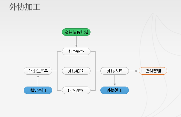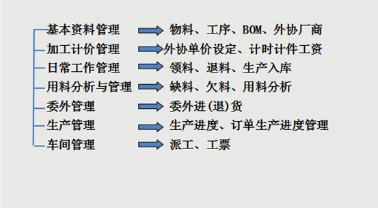 3、外协加工主要功能应用:委外拨转计划;加工费处理;