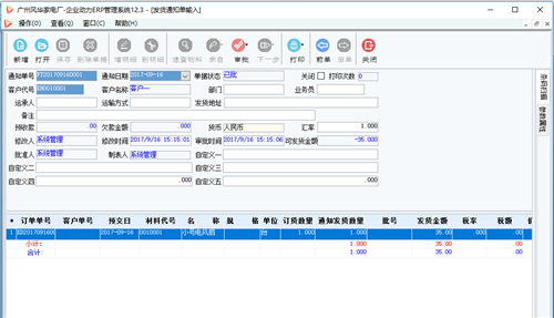 发货通知单的作用,用来控制发货流程,可塑性较强,大多应用于财务收取订单预收款(或全款)后给出可以发货指令到仓库应用,可根据客户的信用额度、订单金额、预收款自动进行可发货金额的计算,对客户信用进行有效控制。发货通知单非必要流程。系统可经过设置后直接走订单-发货单流程。