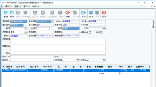 根据发货单开具退货单可记录退货原因、处理方法(换货、退货)等信息。