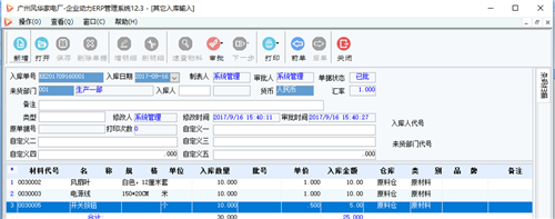 在企业实际业务中,除了销售退货、采购收货、生产入库等正常入库业务外,还会发生一些其他的入库行为。系统将这些特殊的业务通过其他入库单来进行处理。其他入库单审批后将增加物料对应仓库的库存。