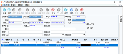 企业为了平衡各个仓库间物料的平衡或由于其它原因需要将物料由一个仓库拨转到另一个仓库,这种情况可通过拨转单来管理和办理转仓手续 。也有应用于外地分部的调拔。