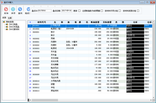 在盘点时需要注意停止物料的出入库,避免数据错误,因此一般是小批量、分仓库的产生盘点卡,并尽快完成盘点录入工作。