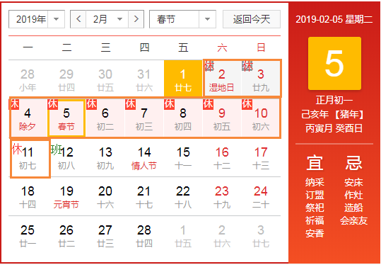 根据《国务院办公厅关于2019年节假日部分安排的通知》精神,结合我司实际情况,现将我公司2019年春节放假调休日期的具体安排通知如下: