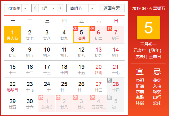 根据《国务院办公厅关于2019年部分节假日安排的通知》精神,结合我司实际情况,现将我司2019年清明节放假具体安排通知如下: