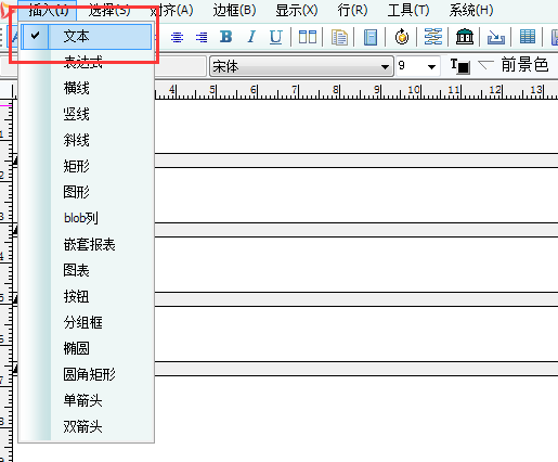3、插入一个“文本”,双击或右键点击表中“文本”,弹出属性设置窗口: