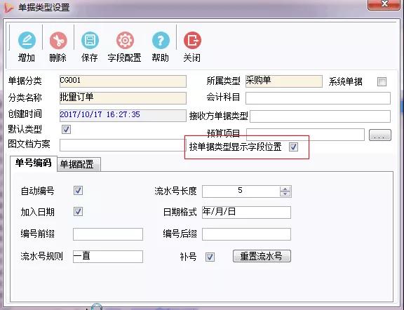 操作说明和使用说明如下:资料-单据类型-自定义单据类型,勾设“按单据类型显示字段位置”项,下单时只需选择对应的单据类型,并设置相应的字段位置及必填项就能分类不同单据了。