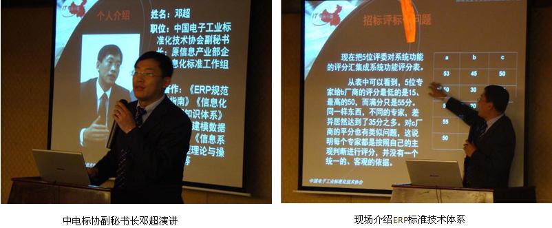 会上,中国电子工业标准化技术协会副秘书长邓超表示:ERP行业标准不是针对ERP软件的标准,而是帮助企业选择ERP以及用好ERP的一系列技术规范;推广的过程更像是给企业提供的管理咨询服务。事实上,该行业标准本身就是二十多家ERP资深厂商共同参与制定的,其目的既在于规范信息化市场、促进有序竞争、推动信息化健康发展,更是为了加快ERP管理理念的普及,为社会培养更多管理+IT的复合型人才。