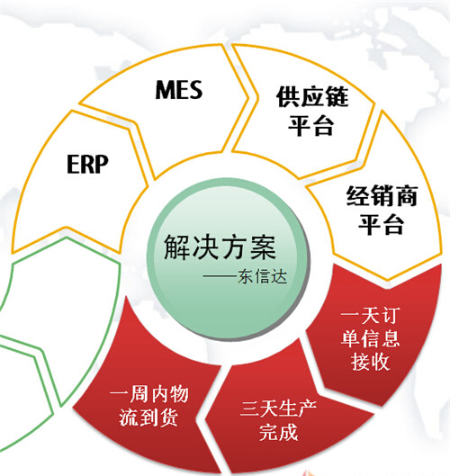 东信达提供解决方案将ERP、MES、供应链平台、经销商平台等将万佳泓旗下的工厂、销售公司、物流中心等多家实体结合起来,实现一天订单信息接收、三天生产完成、一周内物流到货。