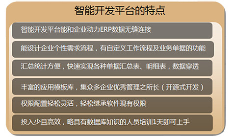 “企业动力智能开发平台”针对有一定信息化基础的客户,提供用户自主二次开发平台,企业可按照自身的实际管理要求,开发一些符合企业需求的功能,极大程度地满足企业的个性需求;使管理更加方便,全面。