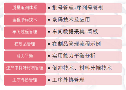 ② 生产环节:生产、领料、入库、派工、工票等;