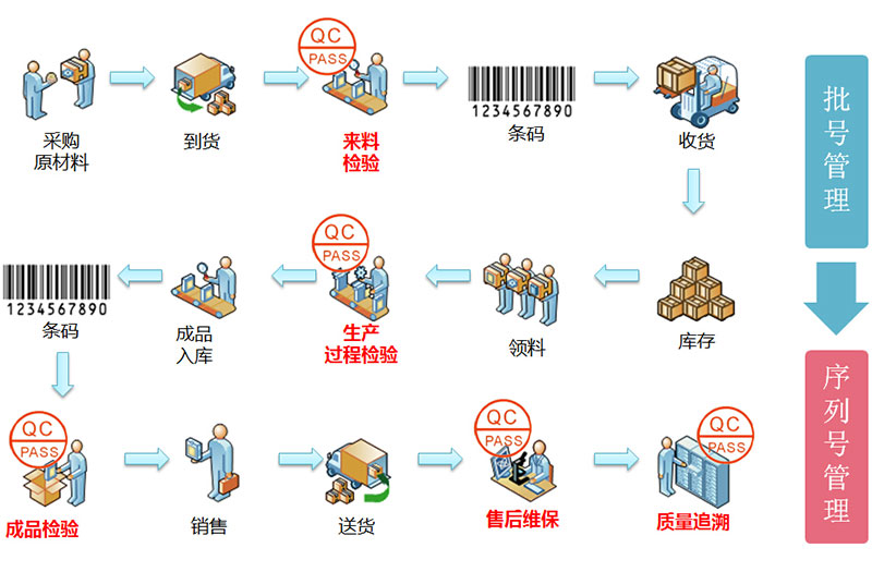 使用功能:来料检验+生产过程检验+产品序列号管理+售后维修管理